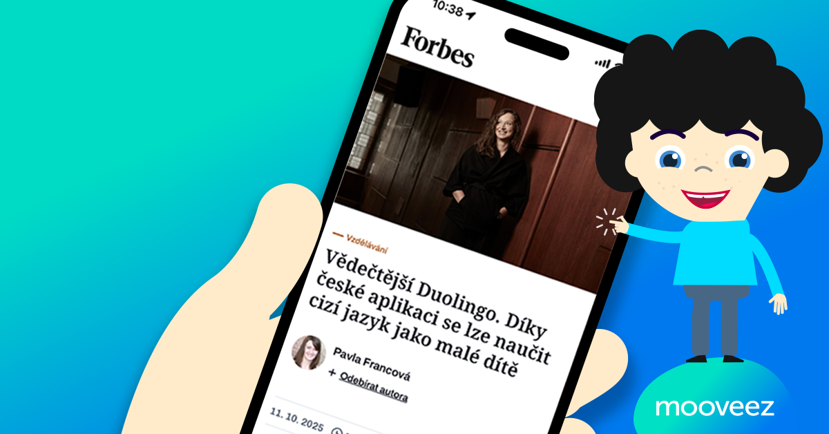 Мы в восторге! Журнал Forbes опубликовал обширную статью о нашем приложении Mooveez и нашем сотрудничестве с лингвистом Катержиной Хладковой и ее командой из Карлова университета. И она определенно стоит прочтения!